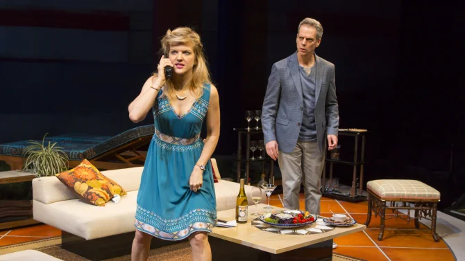 “I don’t know what’s going on but I’ll just go along with it,” a character says in Steve Martin’s “Meteor Shower,” opening at New Haven’s Long Wharf Theater following a summer co-production at San Diego’s Old Globe. That’s good advice for audiences, too. Figuring out this cosmic comedy from the master of the American absurd can result, as it does for one of the characters in the piece, in “brain explosions.” So sure, there are some rethinks and rewinds along the way in this brisk evening of couples therapy, especially in the post-post-modern second act. But this loopy satire of marriage, sex and the inner id still provides lots of laughs — and another likely staple for theaters that found success with Martin’s two earlier plays.