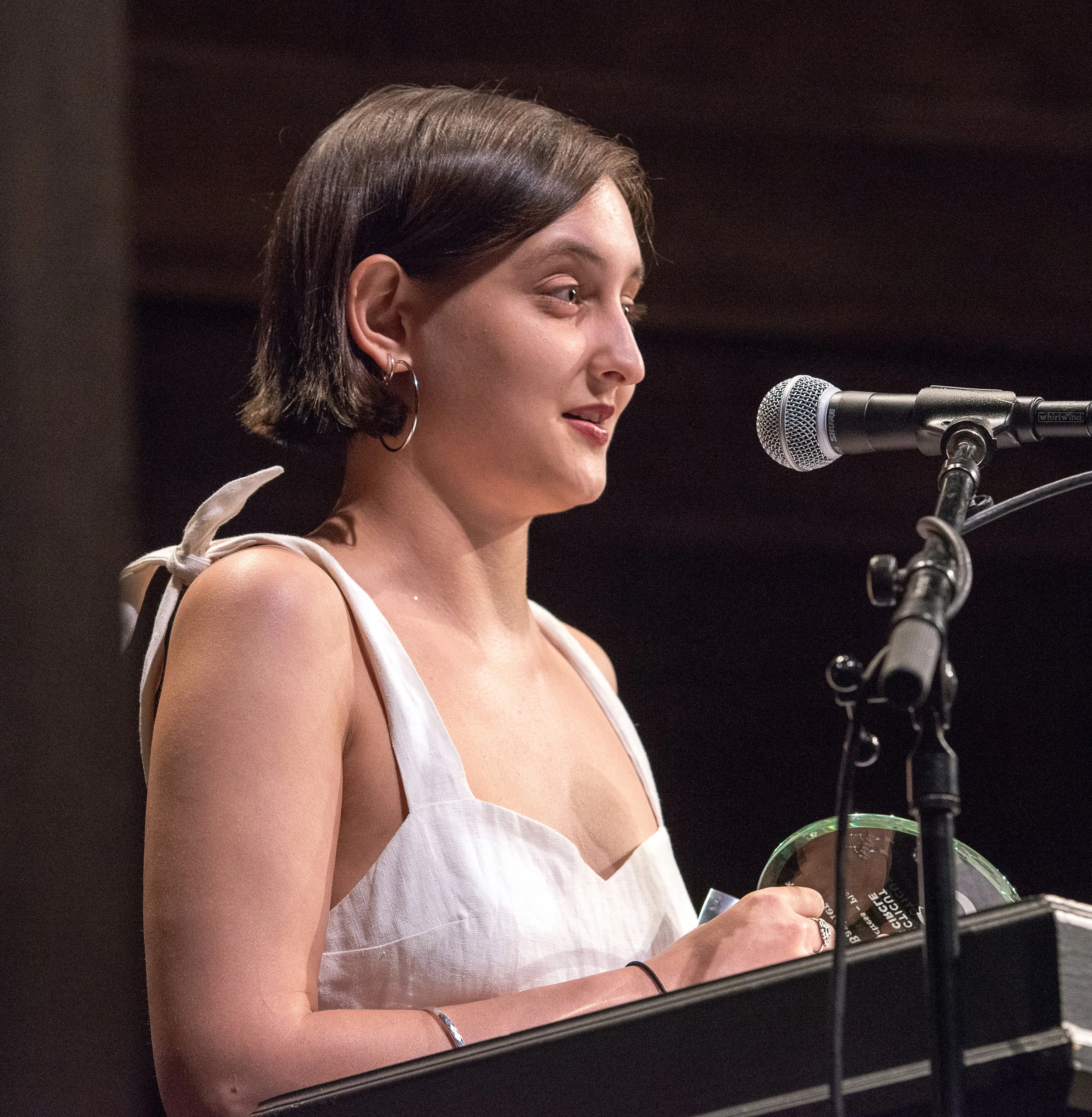 Isabelle Barbier accents the award for outstanding actress in a play award for Playhouse on Park's production of "The Diary of Anne Frank"