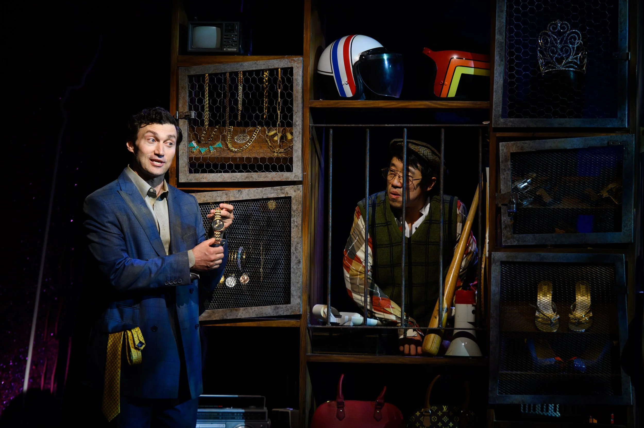 In the film, Eddie Murphy’s brazen con artist stole the spotlight from Dan Aykroyd playing Louis Winthrope III, the preppy financier brought down to the gutter by the manipulative brothers (played onstage by Marc Kudisch and Lenny Wolpe). But here, Bryce Pinkham — who knows a few things about playing privilege from “A Gentleman’s Guide to Love and Murder” — dominates as Louis. He’s delightfully ridiculous, even when given middling material.