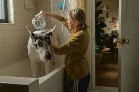 The book and film centers on Iris (Watts), a writer grieving the suicide of her close friend and mentor Walter (Murray) when she inherits not only his literary legacy but his dog, a Harlequin Great Dane named Apollo. The reluctant caretaker finds her new roommate taking over — and destroying — her tiny Manhattan rent-controlled apartment where dogs are not allowed. The film is about grief, friendship and the special connections between people and their pets.