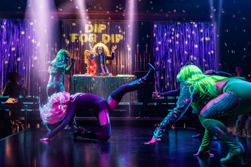 Co-directors Zhailon Levingston and Bill Rauch keep things in a constant state of fabulousness, presenting entertaining design diversions, creating a bit of drama from the outside world, and introducing a few glittering special effects, too. (A giant swirling disco ball descends mid-show from the rafters above the audience, bringing to mind the grand chandelier effect from another Lloyd-Webber show.)